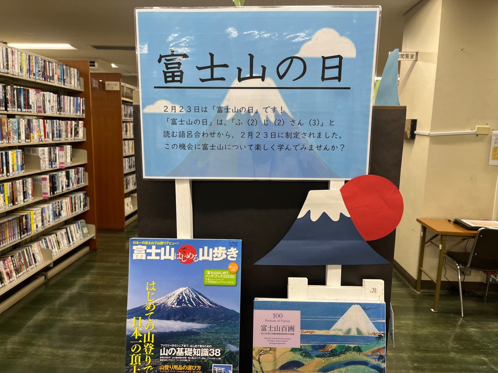 「富士山の日」に合わせて、絵本から一般書まで、幅広く富士山に関する本を集めました。